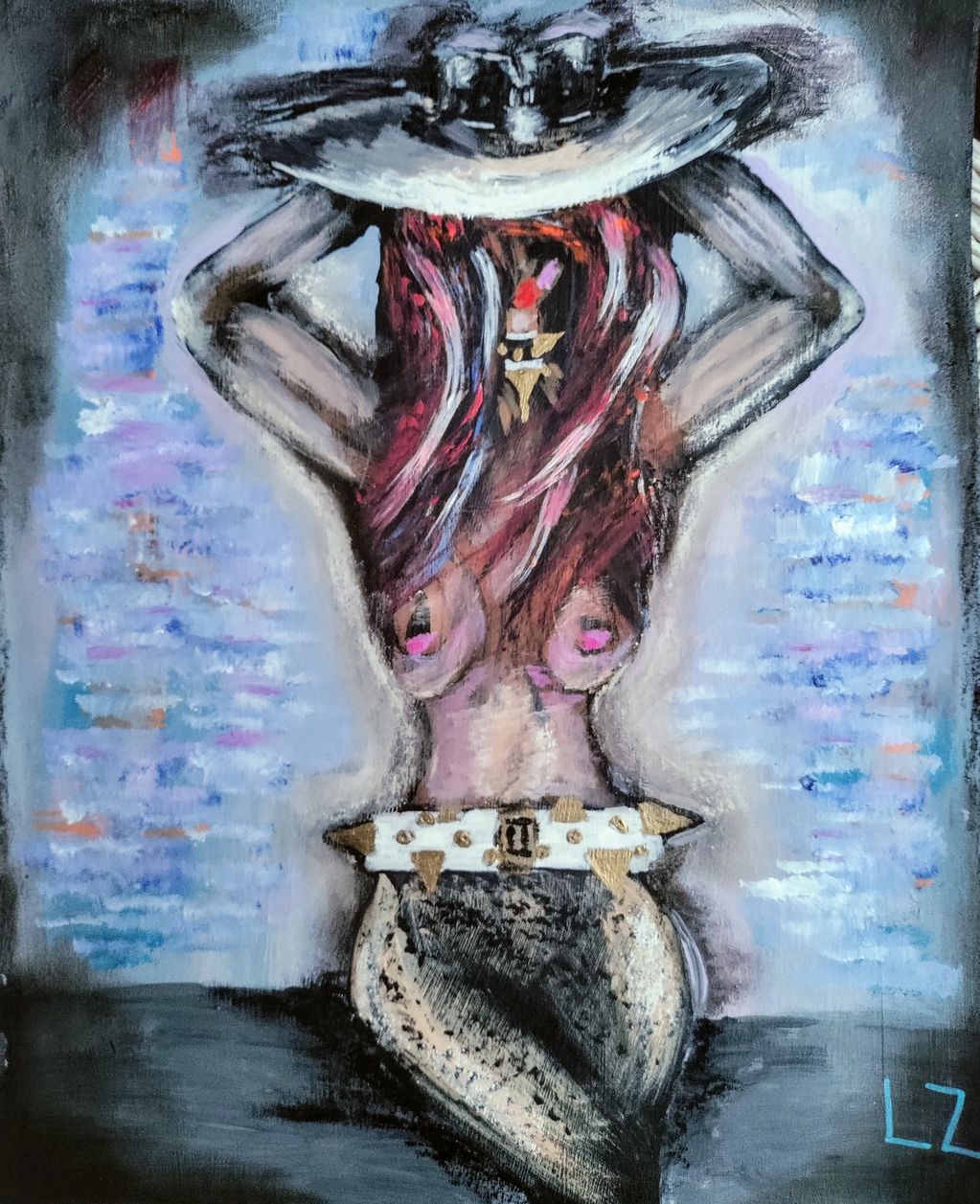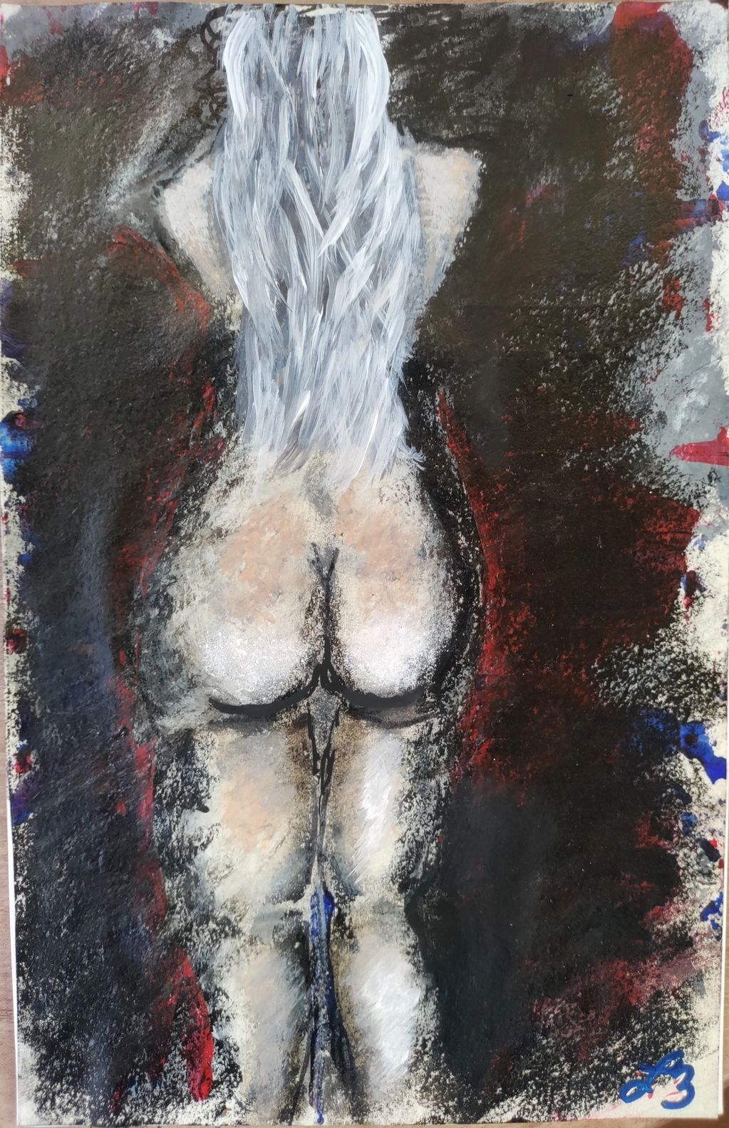 Acrylic, pastel, solidified paint marker on canvas board